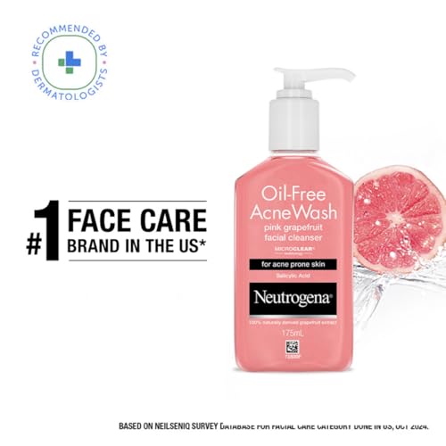 Neutrogena Oil Free Acne Wash | Pink Grapefruit | Deep Cleansing Face Wash with Salicylic Acid | Alcohol Free, Non Comedogenic & Dermatologically Tested | For Oily Acne Prone Skin | 175ml