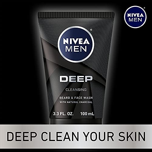 NIVEA MEN DEEP Cleansing Beard and Face Wash Enriched with Natural Charcoal 3 Pack of 3.3 Fl Oz Tube