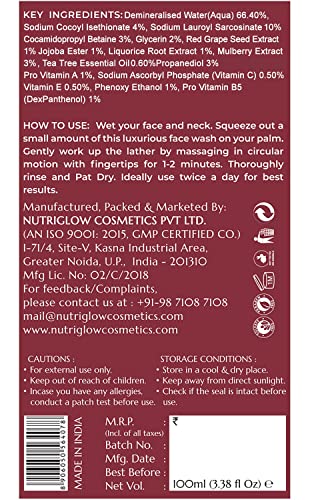 NUTRIGLOW Advanced Organics face wash Anti-Ageing/s Wrinkles red wine face wash 100 ml