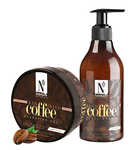 NutriGlow NATURAL'S Raw Irish Coffee Hydrating Gel (200gm) & Face Wash (300ml) For Hydrating Skin & Skin Lightening No Sulphates Pack of 2