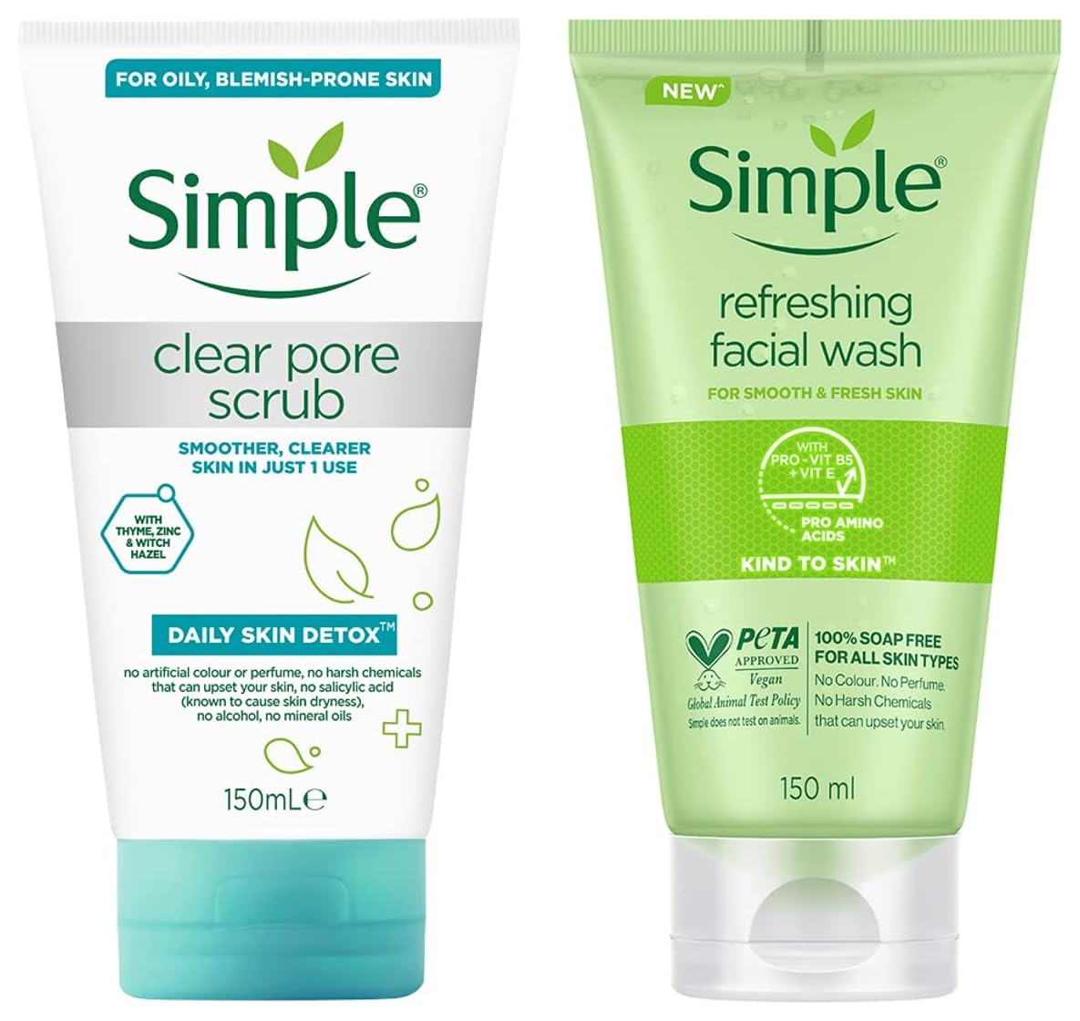 Simple Kind To Skin Refreshing Facial Wash 150 ml & Simple Daily Skin Detox Clear Pore Facial Scrub With Witch Hazel 150 ml