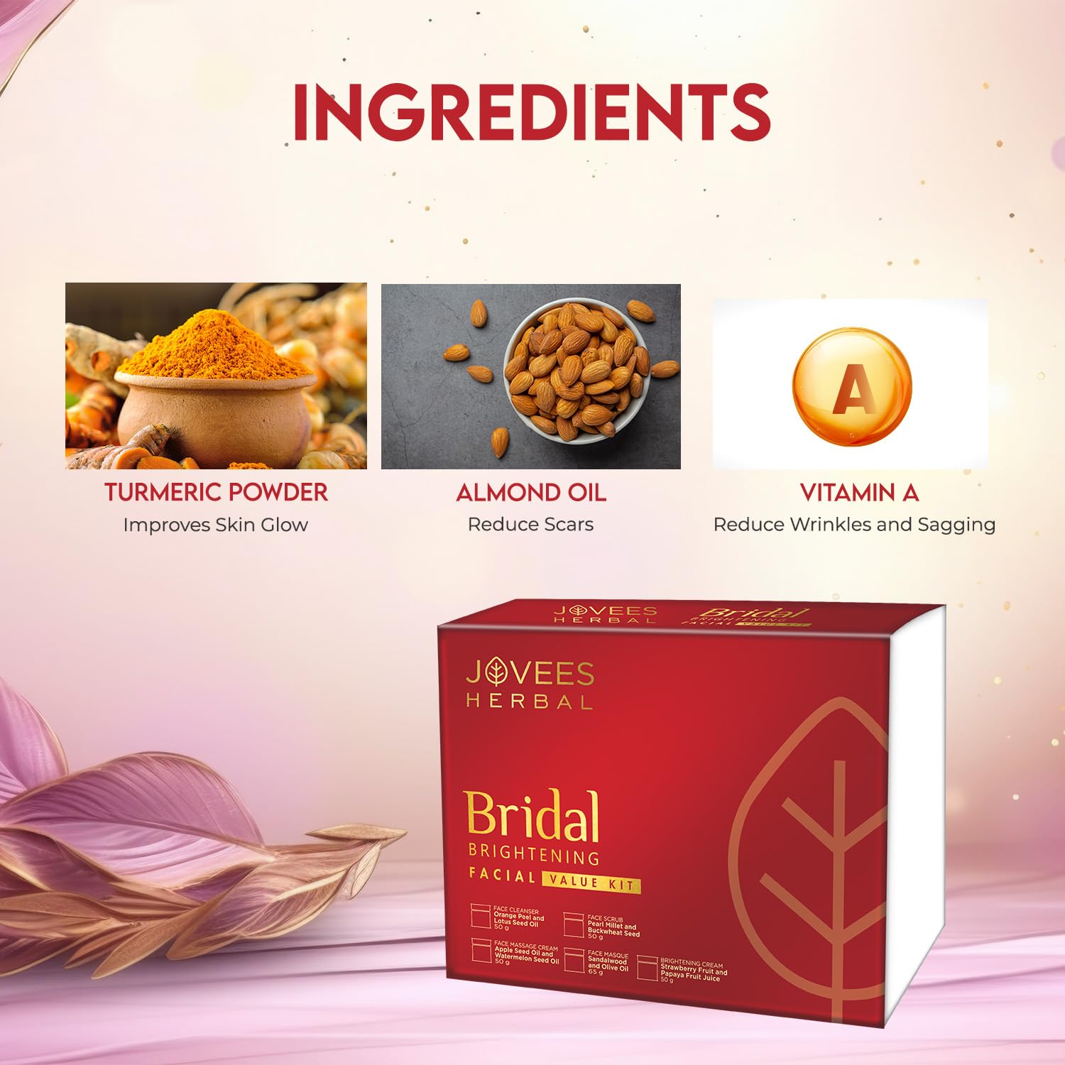 Jovees Herbal Bridal Facial Kit | For Brighter & Radiant Glow | For Multiple Use | Improves Uneven Skin Tone Dark Spots & Dullness