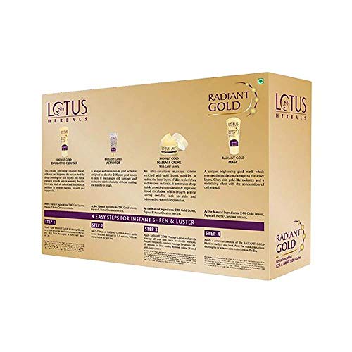 Lotus Herbals Radiant Gold Facial Kit For Instant Glow With 24K Pure Gold & Papaya,4 Easy Steps, 170g (Multiple Use)