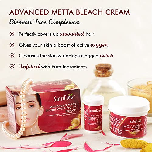 NutriGlow Advanced Meta Instant White Pro ++ Bleach for Glowing and Brightening Skin Lightens Facial Hair Dark Spot Reduction All Skin Types 43gm