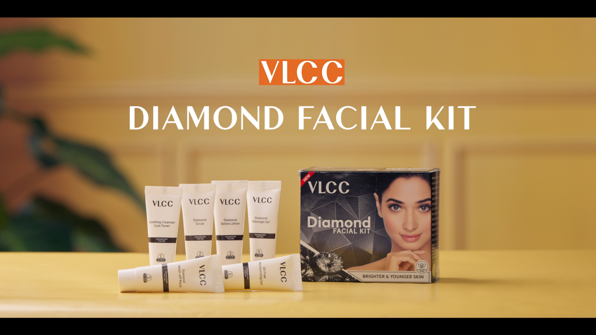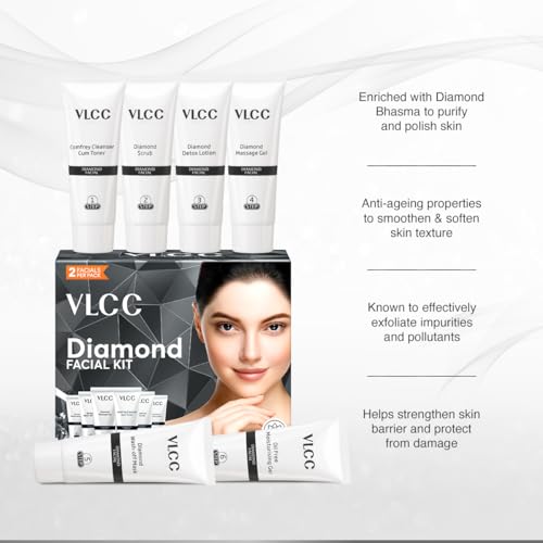 VLCC Diamond Facial Kit - 60g | Skin purifying with Parlour Glow | Improves Elasticity, Brightens and Lightens Patchy Damaged Skin | With Colloidal Diamond, Jojoba Oil, Olive Oil & Aloe Vera.