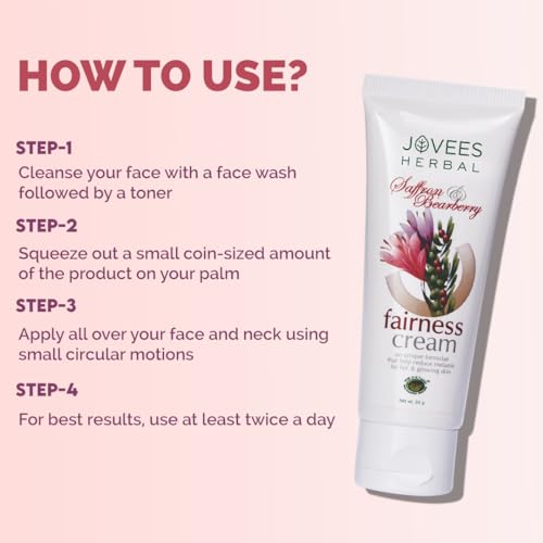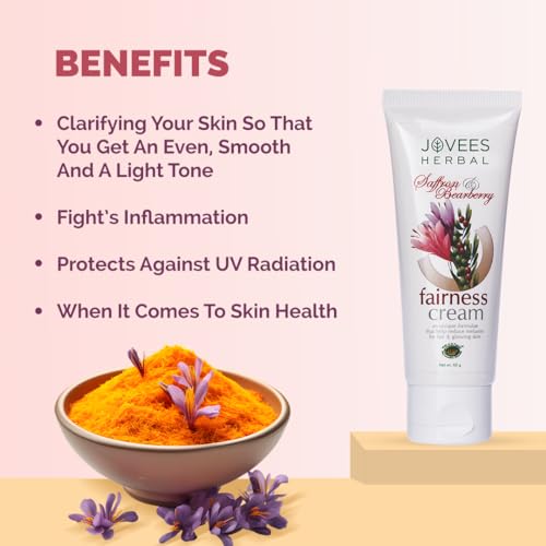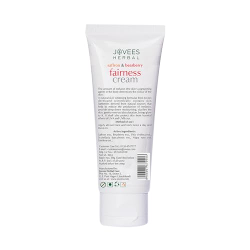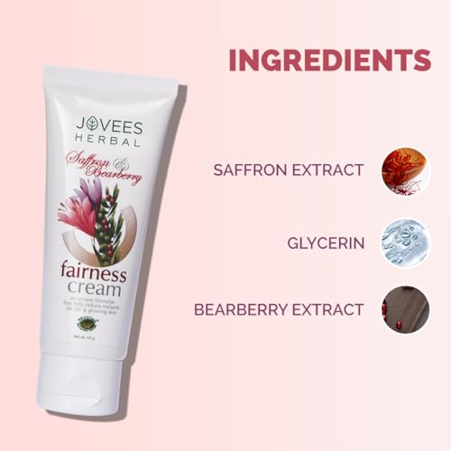 Jovees Herbal Saffron & Bearberry Fairness Face Cream | For Women/Men | Bright, Even Toned and Glowing Skin | UVA/UVB Protection | Paraben and Alcohol Free | 60GM