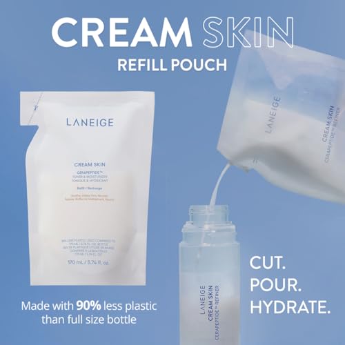 LANEIGE Cream Skin Toner & Moisturizer | Dual Function | Toner for Glowing Skin | Ceramides Moisturizer with Peptides | Boosts Skin Barrier & Lightweight | Korean Skincare | For Men and Women-Refill