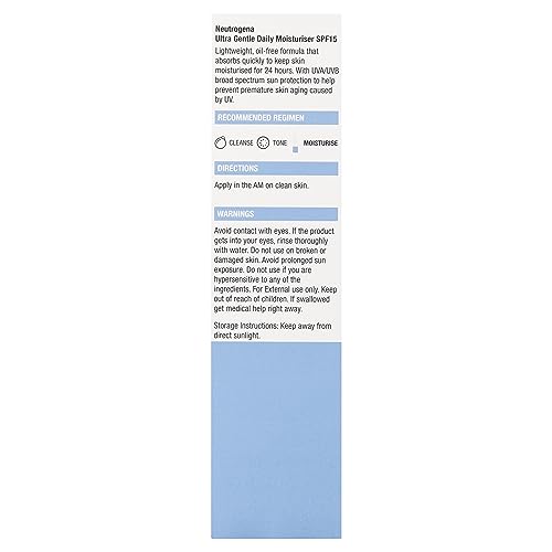 Product 2: Neutrogena Oil Free Facial Moisturiser SPF 15 provides long-lasting 12 hour moisturization with sun protection for softer smoother younger-looking skin