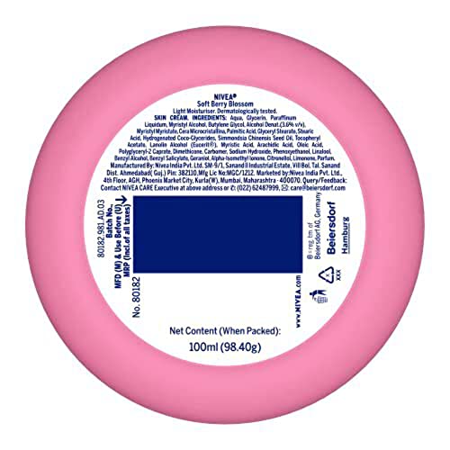 NIVEA Soft Light Moisturizer 100ml | Berry Blossom | For Face, Hand & Body, Instant Hydration | Non-Greasy Cream | With Vitamin E & Jojoba Oil | All Skin Types