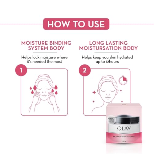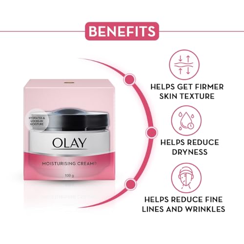 Olay Moisturizing Cream |Nourishing and moisturizing ingredients |All day moisture, Improves skin softness and smoothness |Suitable for Normal, Dry, Oily & Combination skin |100 gm