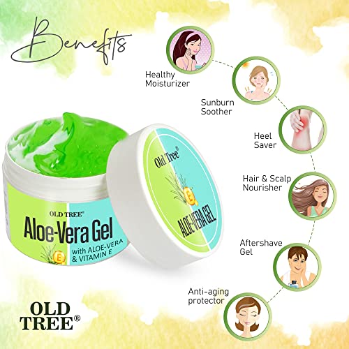 Old Tree Pure Aloe Vera Skin Gel (200g) - Non Sticky Aloe Vera Gel with Vitamin E for Glowing Skin Body and Hair Care
