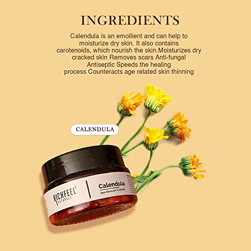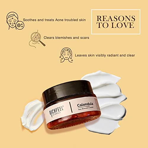 Richfeel Calendula Anti Blemish Overnight Cream | Power of Soothing Calendula & Clinically Potent Echinacea | For Skin prone to Acne, Blackheads & Pores | Physician Formulated | 50 g