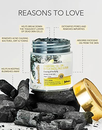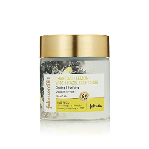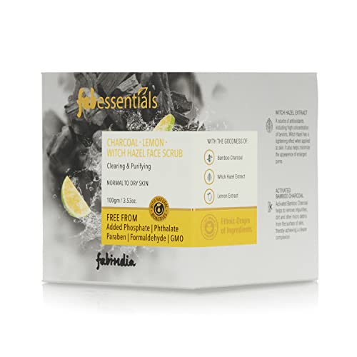 fabessentials Lemon Witch Hazel Face Scrub | with Activated Bamboo & Walnut Shell Powder | Removes Acne Causing Bacteria Dirt & Toxins | Exfoliates Skin & s Excessive Oil - 100 gm