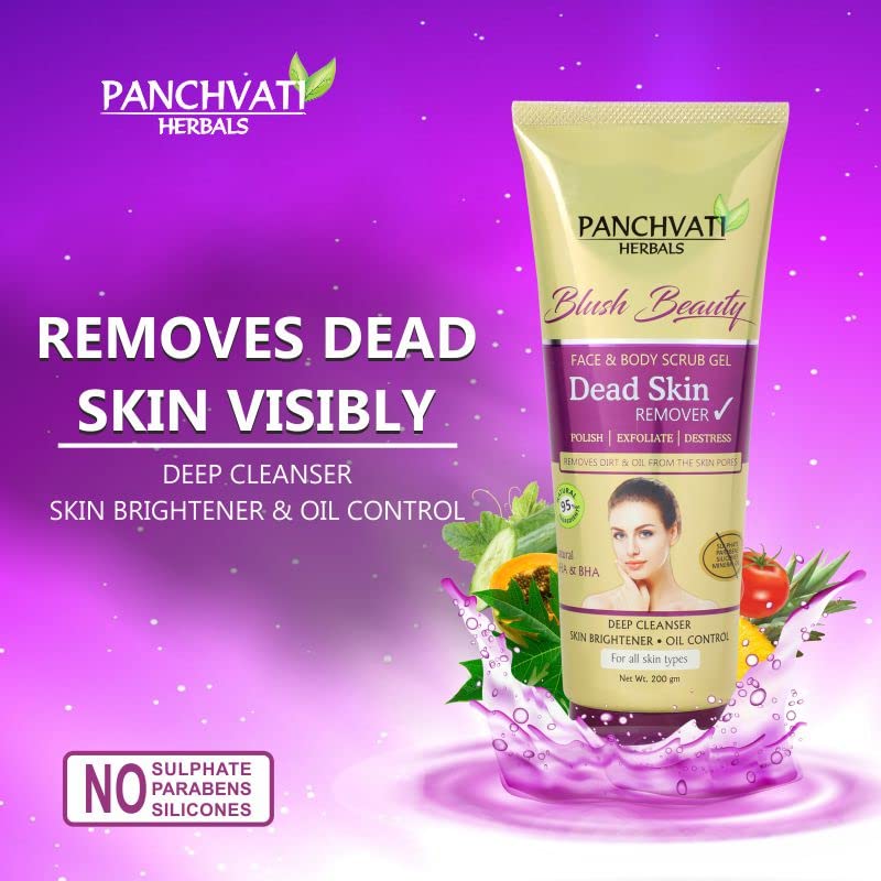 EXFOLIATES REMOVES TAN & DEAD SKIN: Panchvati Dead Skin Remover is a gentle yet powerful skin exfoliator with glowing results that removes dead skin oil & dirt without stripping the skin of its natural moisture. The lightweight non-greasy gel gently buffs