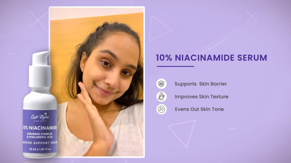 Earth Rhythm 10% Niacinamide Face Serum with Hyaluronic Acid | For Acne Prone, Oily & Sensitive Skin | Evens Out Skin Tone, Improves Texture, Plumps & Hydrates Skin | Men & Women - 30ml