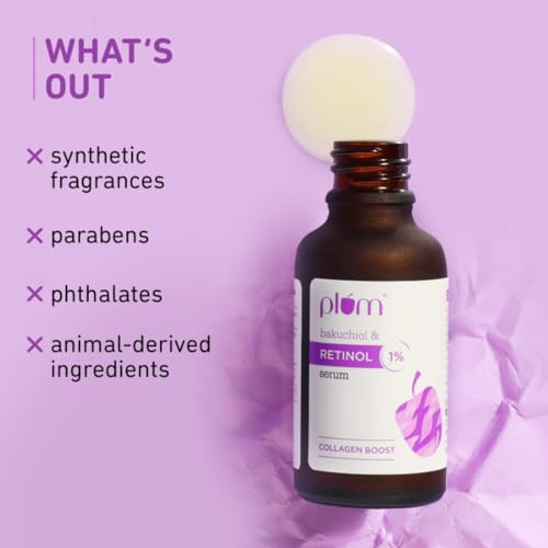 HomeHealth & PersonalSkin CareFace CareSerum & LotionPlum 1% Retinol Anti Aging Night Face Serum with Bakuchiol | Boosts Collagen, Reduces Fine Lines & Wrinkles | Retinol Serum for Face | for Women & Men | Beginner-Friendly | Suits All Skin Types | 20ml
