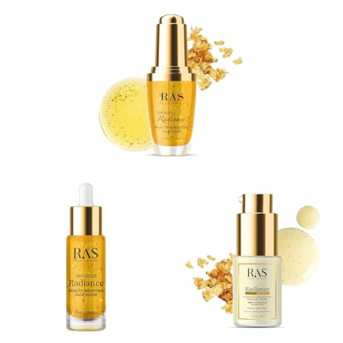 RAS Luxury Oils & RAS Luxury Oils 24K Gold Radiance Elixir Face Serum & RAS Luxury Oils Radiance 24K Gold Brightening 8 in 1 Face Gel Serum Hydrates Skin