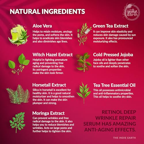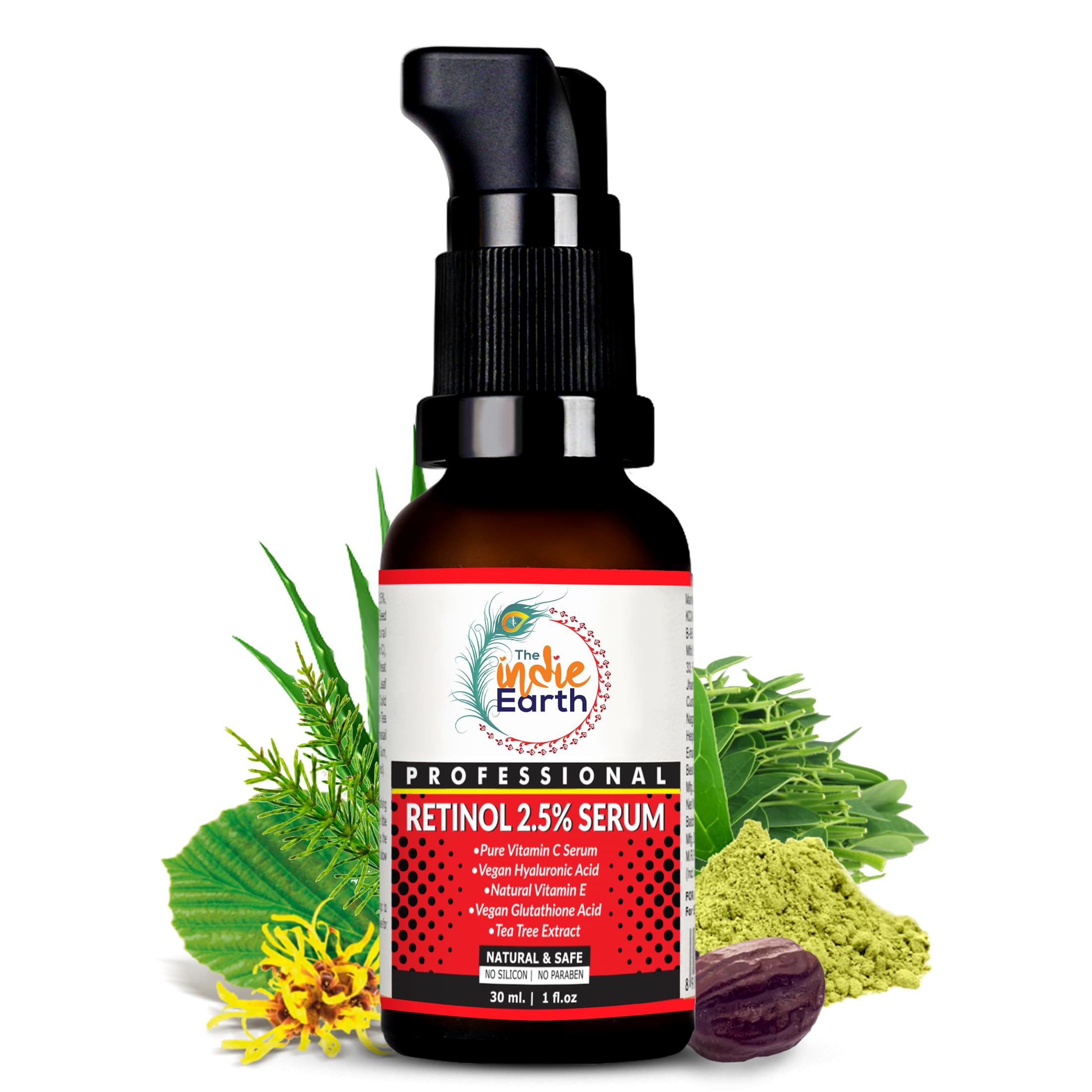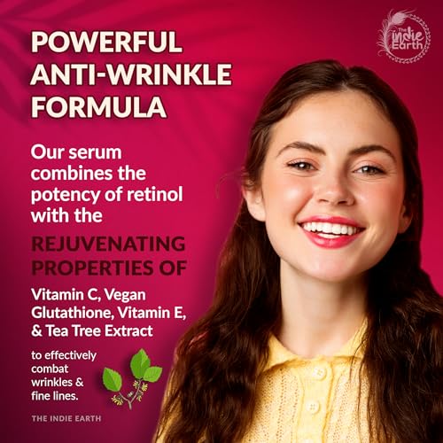 The Indie Earth Retinol 2.5% Deep Wrinkle Repair Serum With Vitamin C Serum, Vegan Glutathione, Vitamin E & Tea Tree Extract Anti-Wrinkle Serum, Best Retinol Serum 30ml | 1 fl.oz