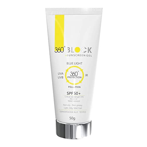360 Block Sunscreen Gel SPF 50+ - protects from UVA, UVB, INFRA-RED RADIATION (IR), BLUE LIGHT & ATMOSPHERIC POLLUTANTS