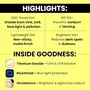 It protects from UVA UVB INFRA-RED RADIATION (IR) BLUE LIGHT & ATMOSPHERIC POLLUTANTS