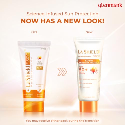 La Shield Fisico SPF 50 PA+++ Mineral Sunscreen | Water Resistant Upto 8 hours | Chemical filter free | Non-greasy | Lightweight | No White Cast | Broad spectrum | Dermatologist Prescribed | For Sensitive skin |50g