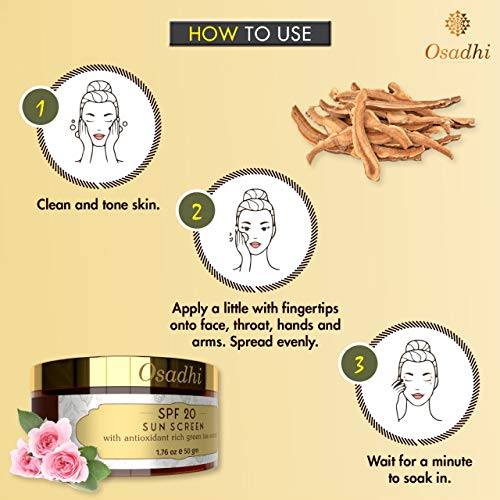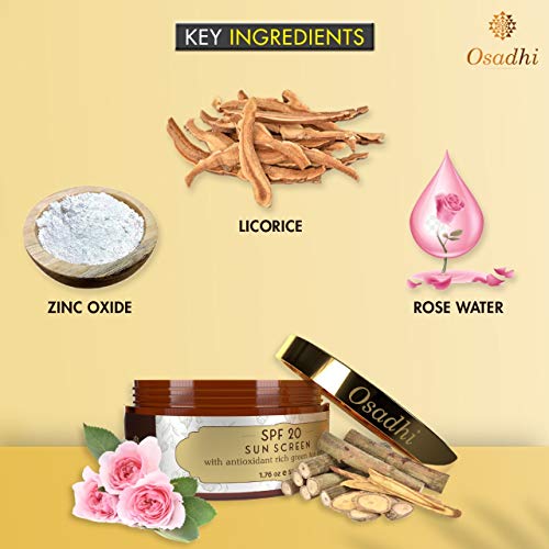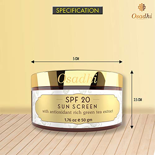 OSADHI Vegan Sunscreen Spf 20 for Women Men With Zinc Oxide for Oily Acne Prone Skin 50 Gm