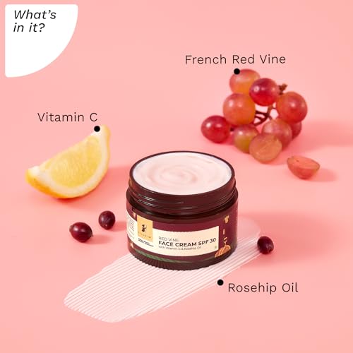 PILGRIM French Red Vine Face Cream with SPF 30 Sunscreen, Rosehip Oil & Vit C For Anti Ageing, Sun Protection PA+++, Daily Use, Dry, Oily, Combination Skin, Men & Women, 50g