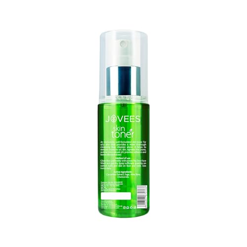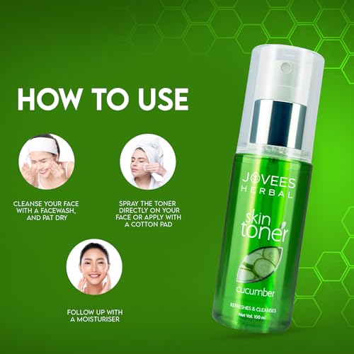 Jovees Herbal Cucumber Skin Toner | Toner for Oily, Sensitive, and Acne Prone Skin | Pore Tightening and Glowing Skin | For Normal to Oily Skin | Paraben and Alcohol Free | 100ML New
