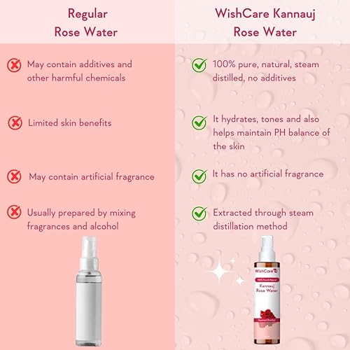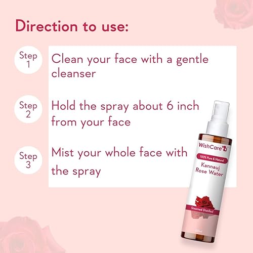 100% PUE & NATURAL : WishCare Rose water is completely pure natural and sourced from Kannauj which is famous for cultivating finest Roses in India.. Absolutely ZERO Additives & Alcohol. Naturally hydrate revitalize & moisturize your skin for a refreshed l