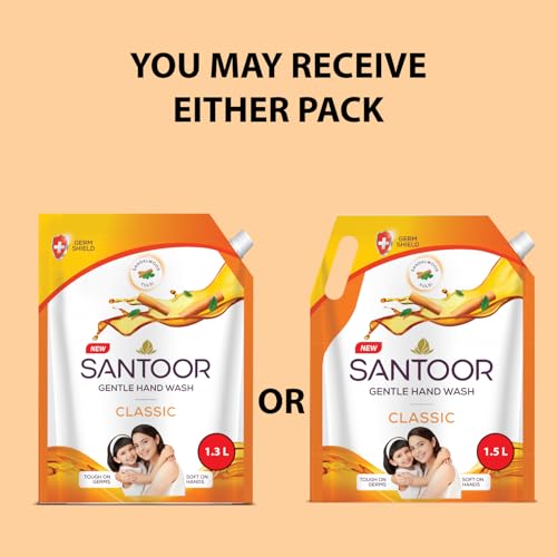 Santoor Classic Gentle Hand Wash with Natural goodness of Sandalwood & Tulsi, 1300ml