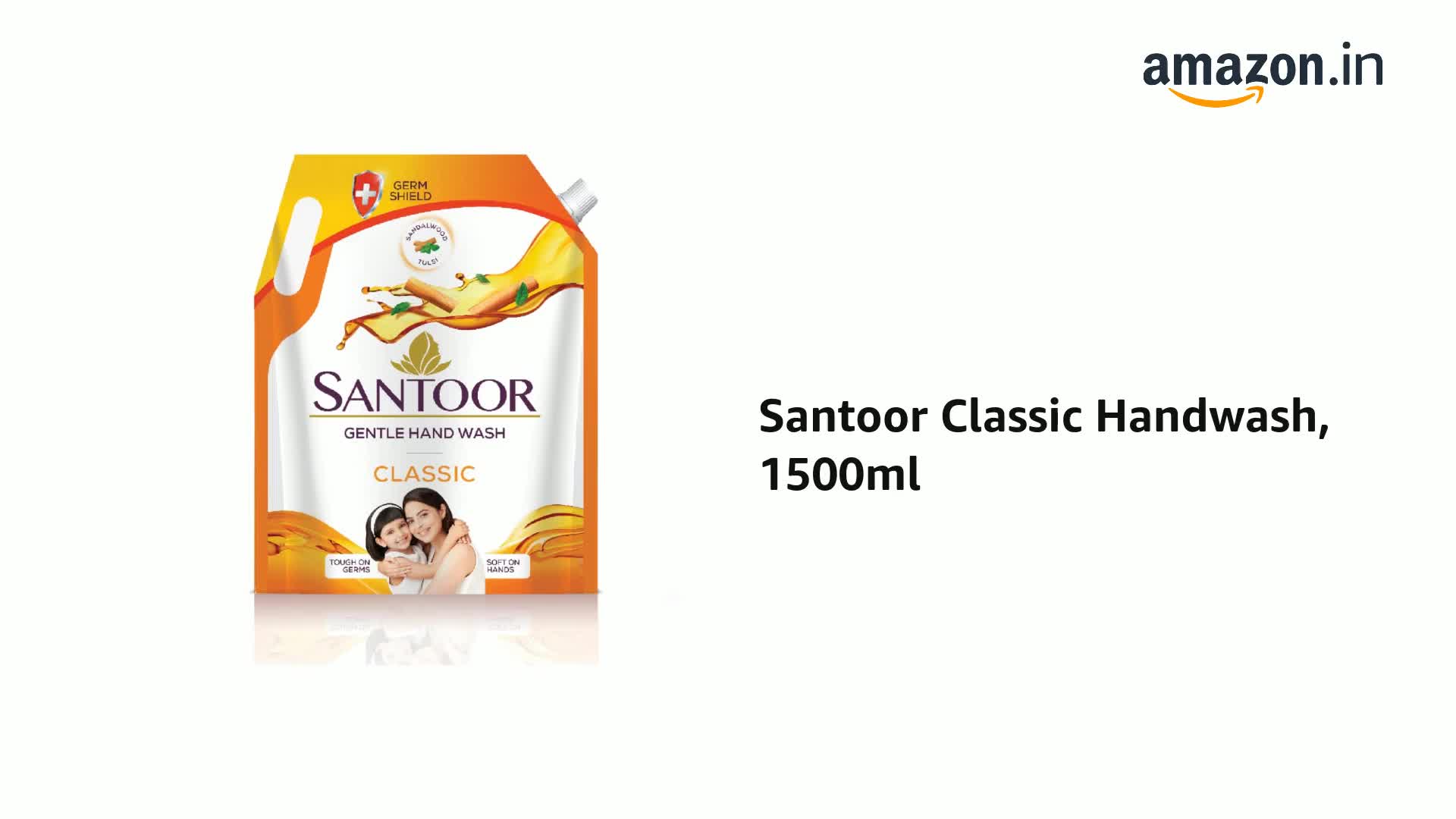 Santoor Classic Gentle Hand Wash 1500ml with Natural goodness of Sandalwood & Tulsi