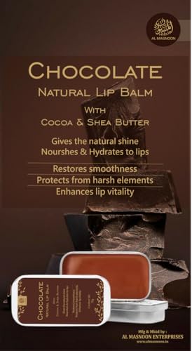 AL MASNOON 100% Natural Chocolate Lip Balm with Shea Butter & Cocoa - Nourishing & Moisturizing 10g Pack No Color Added for Soft & Smooth Lips