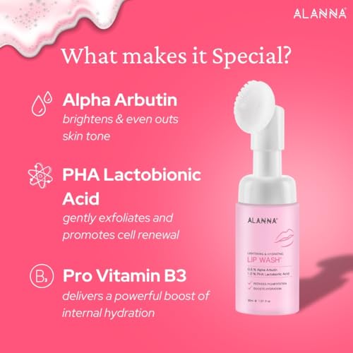 ALANNA® 2-Step Lip Brightening LipWash® & Day Lip ButterMask® | For Dark & Dry Pigmented Lips | Smooth, Even-Toned Lips | Smoke, Sun & Pollution Damage | For Women | 30ml + 15gm