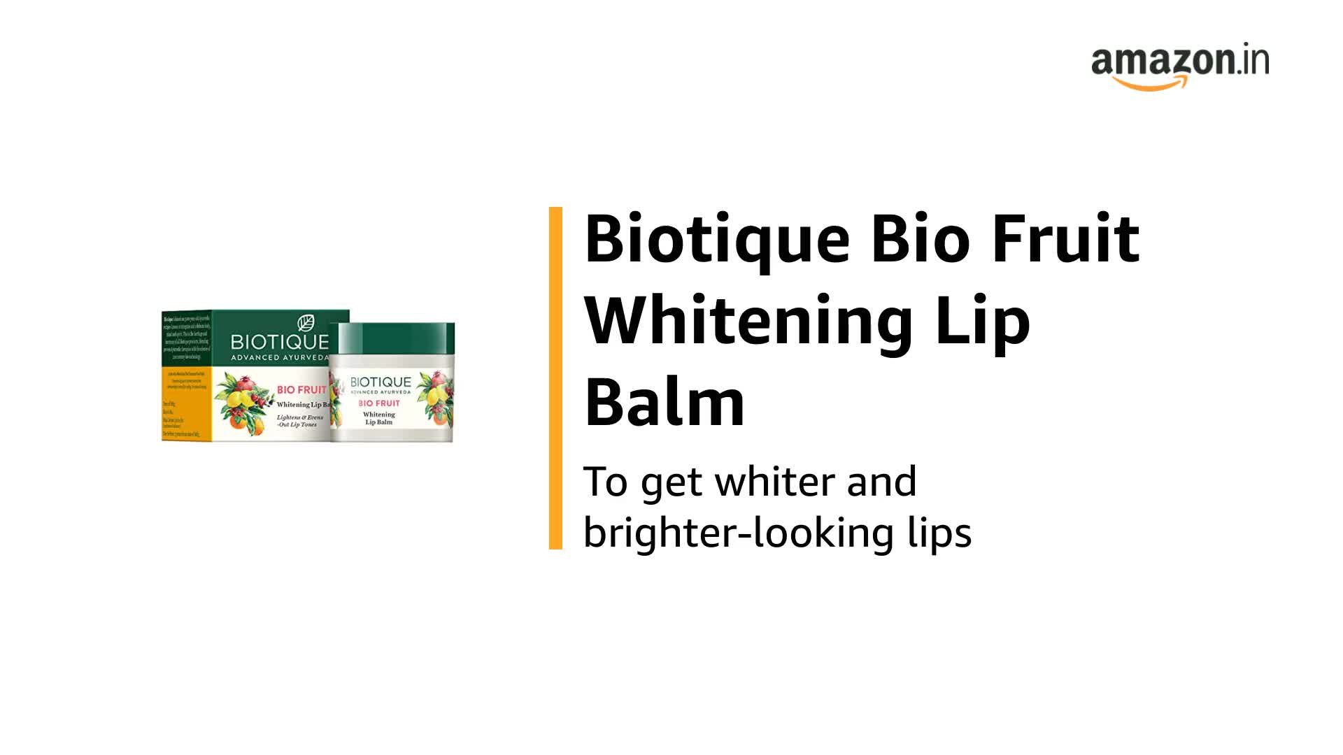 Biotique Fruit Whitening/Brightening Lip Balm | Hydrated and Nourishing Lips| Visibly Lighter Lips | Evens Out Lip Tone | De-pigmentation Balm |100% Botanical Extracts| All Skin Types | 12G