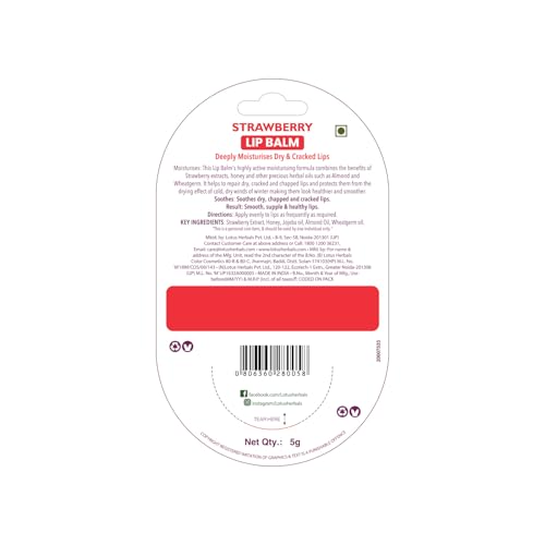 Lotus Herbals Lip Balm - Strawberry | For Dry & Cracked Lips | 5g