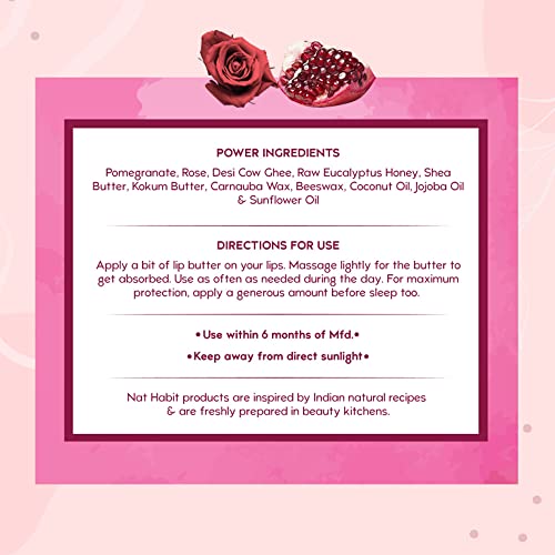 HomeHealth & PersonalSkin CareLip CareLip BalmsNat Habit Lip Balm Fresh Infused Pomegranate Rose Lip Butter With Desi Ghee & Raw Honey For Lip Pigmentation, Lightening, Dark And Chapped Lips, 10gm
