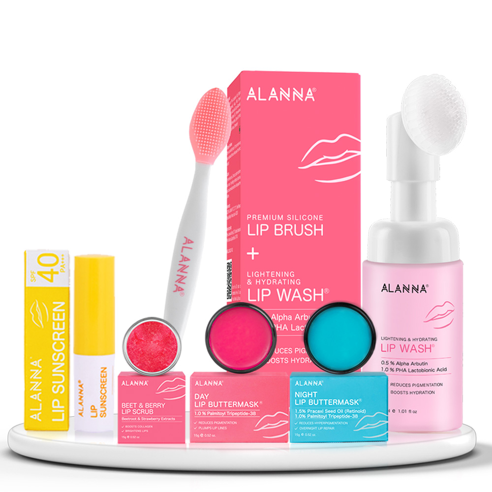 ALANNA® 5-Step Lip Brightening Kit for Women | LipWash®, Balm, Scrub & ButterMask® | For Dark & Pigmented Lips | Smoke, Sun & Pollution Damage | 30ml + 48.5gm