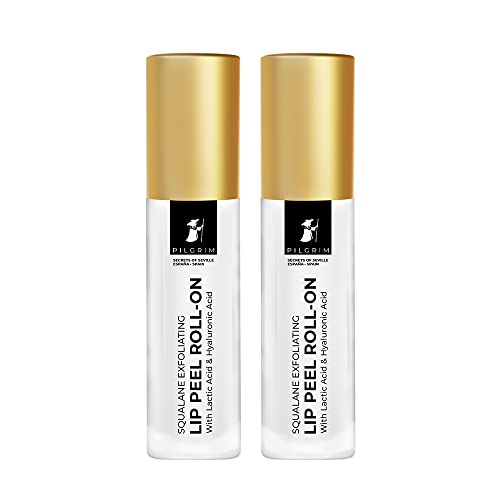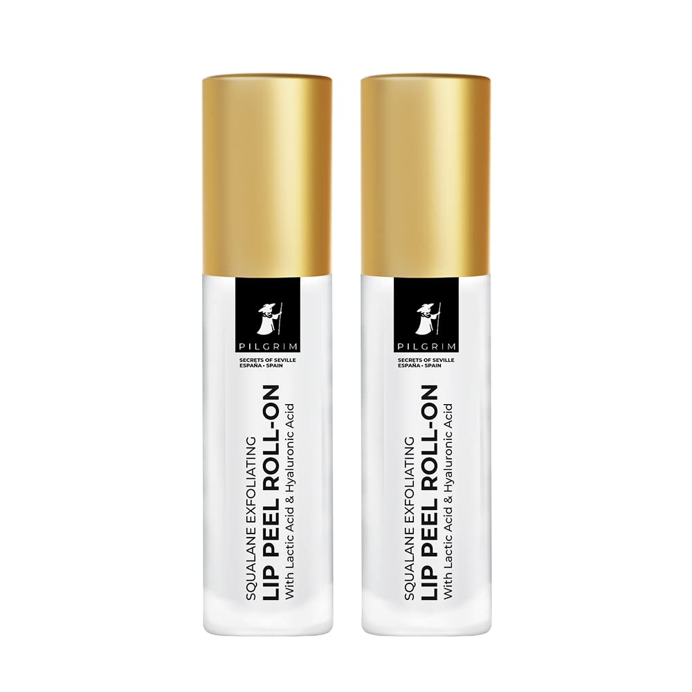 Pilgrim Squalane Lip Peel Roll-On With Lactic Acid&Hyaluronic Acid 6 Ml (Pack Of 2)|Squalane Exfoliating Lip Peel For Soft,Delicate&Glossy Lips|Lip Peel For Hydrating Dry&Flaky Lips,2 Count,Clear