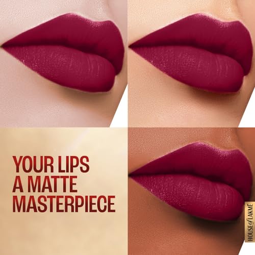 LAKME 9 To 5 Primer + Matte Lipstick, Matte Finish, Lightweight Lipstick, Lasts For 16Hrs, Nourishes Lips & Great For Daily Use, Red Velvet, 3.6G