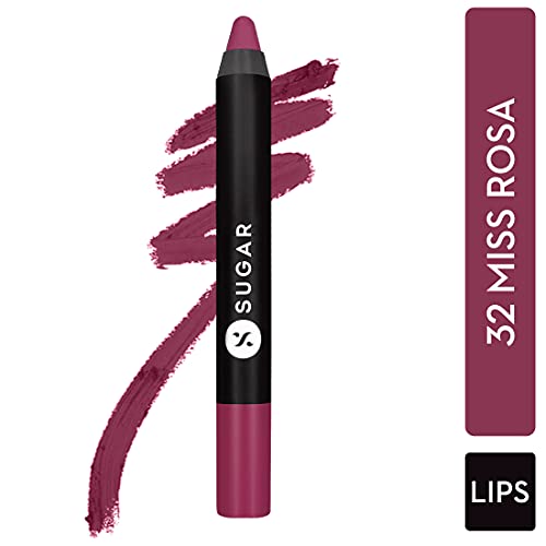 SUGAR Cosmetics - Matte As Hell - Crayon Lipstick -32 Miss Rosa (Dusky Rose) Bold and Silky Matte Finish Lipstick LightLasts Up to 12 hours