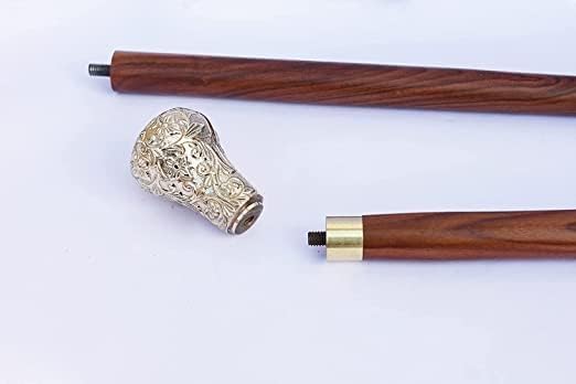 BIJNOR - METAL INLAY IN WOOD Handmade Wooden Folding Walking Stick 36 Inches - Handcrafted Walking Cane with Brass Round Handle - Gifts Ideas