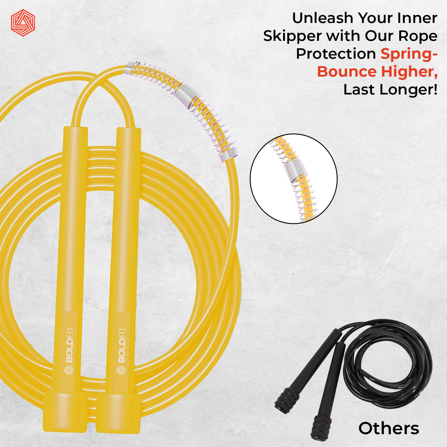 Boldfit Speed Polyvinyl Chloride Skipping Rope with Adjustable Height - Yellow