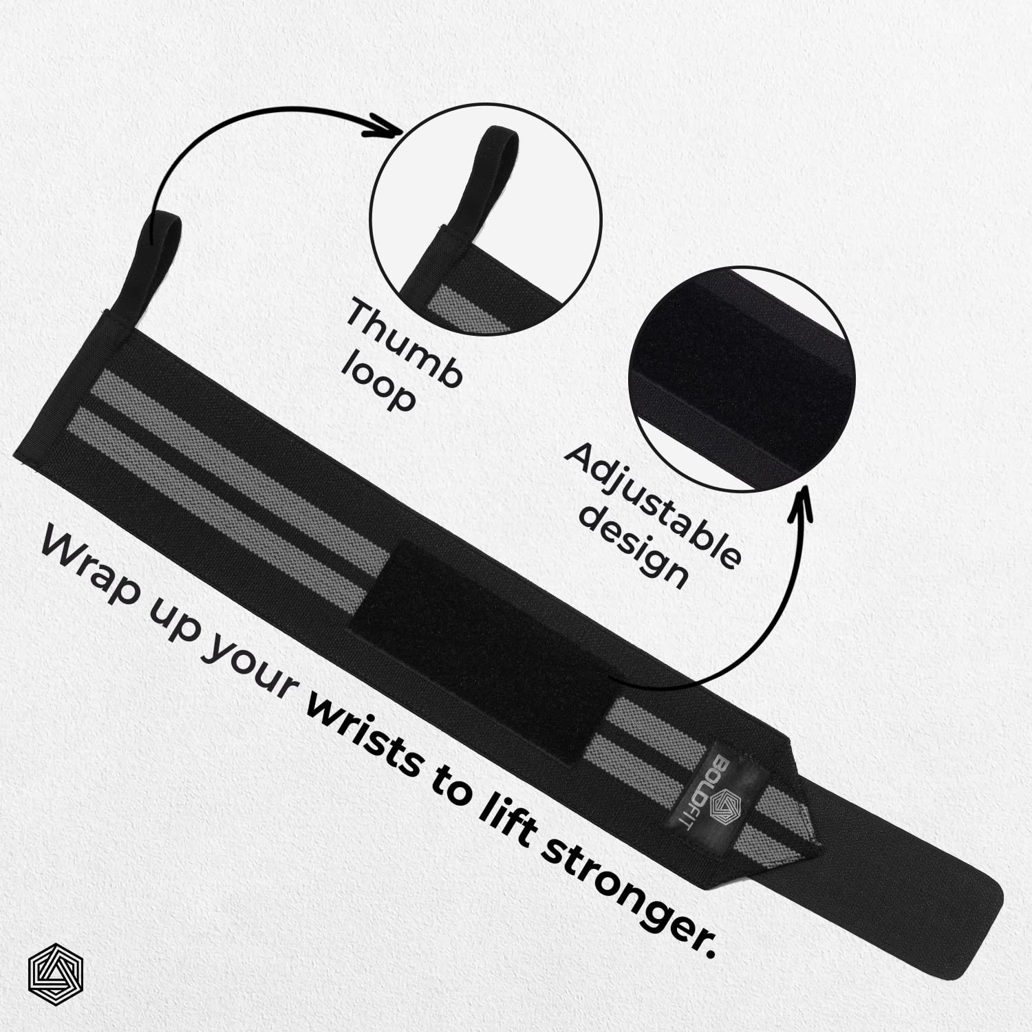 Boldfit Wrist Supporter for Gym Wrist Band (Grey) & Boldfit Skipping Rope - Drumstick Black