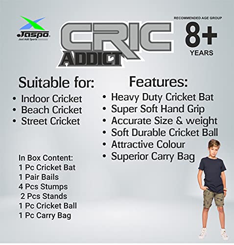 Perfect To Play Indoor & Outdoor Cricket: Jaspo CRIC addict cricket set is perfect choice for kids that can help to develop healthy habits. The cricket set size is perfect for little hands and convenient for the beginners kids to learn cricket.