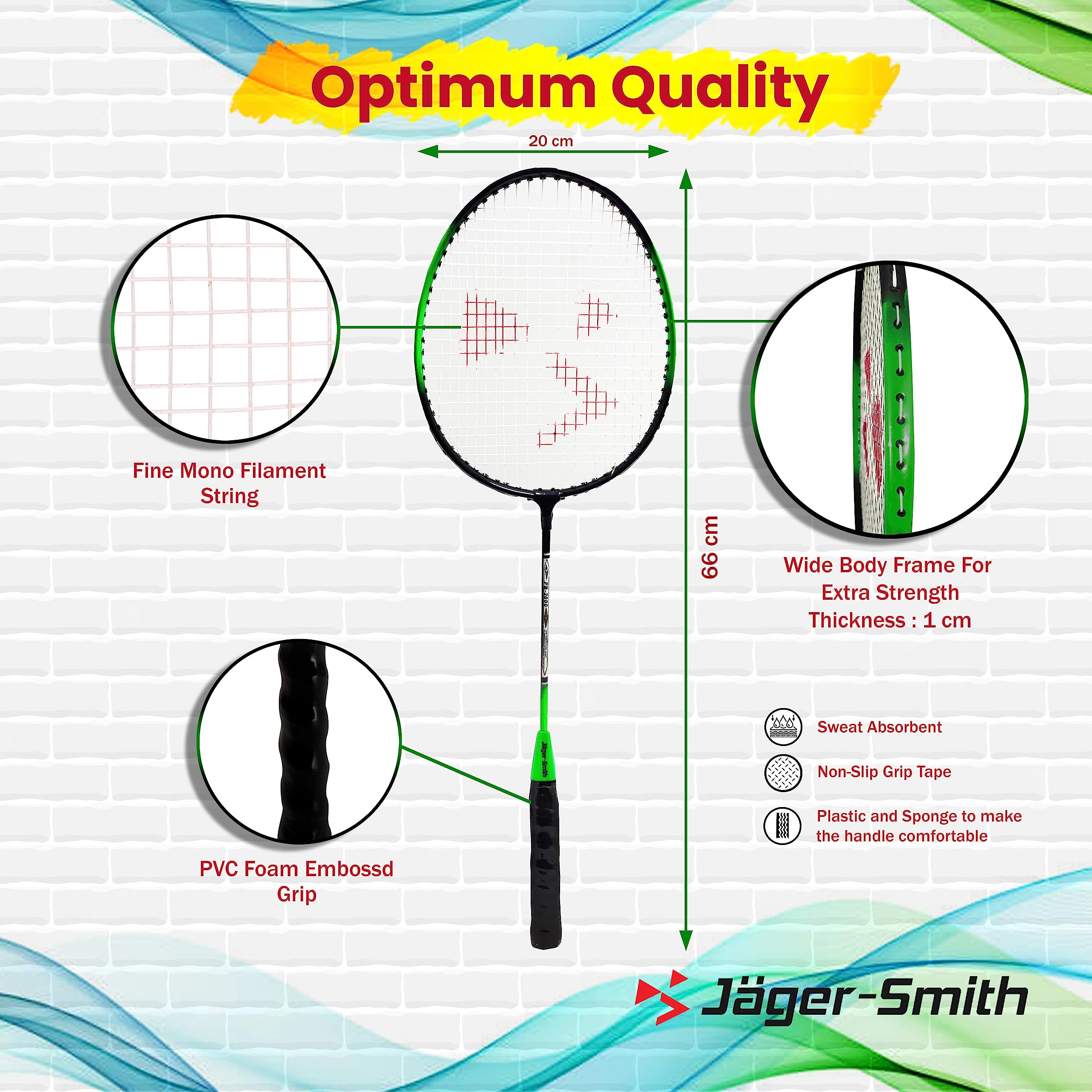 Jager-Smith PB 2000 Combo Aluminium Badminton Racquet with Tempered Steel Shaft & Featherlite 2 (Pack of 3) Feather Shuttles and Full Cover (Made in India)
