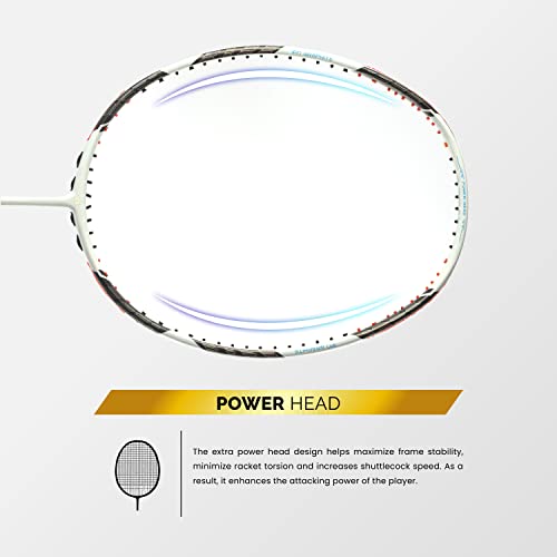 power head: the extra power head design helps maximize frame stability minimize racket torsion and increases shuttlecock speed. as a result it enhances the attacking power of the player.