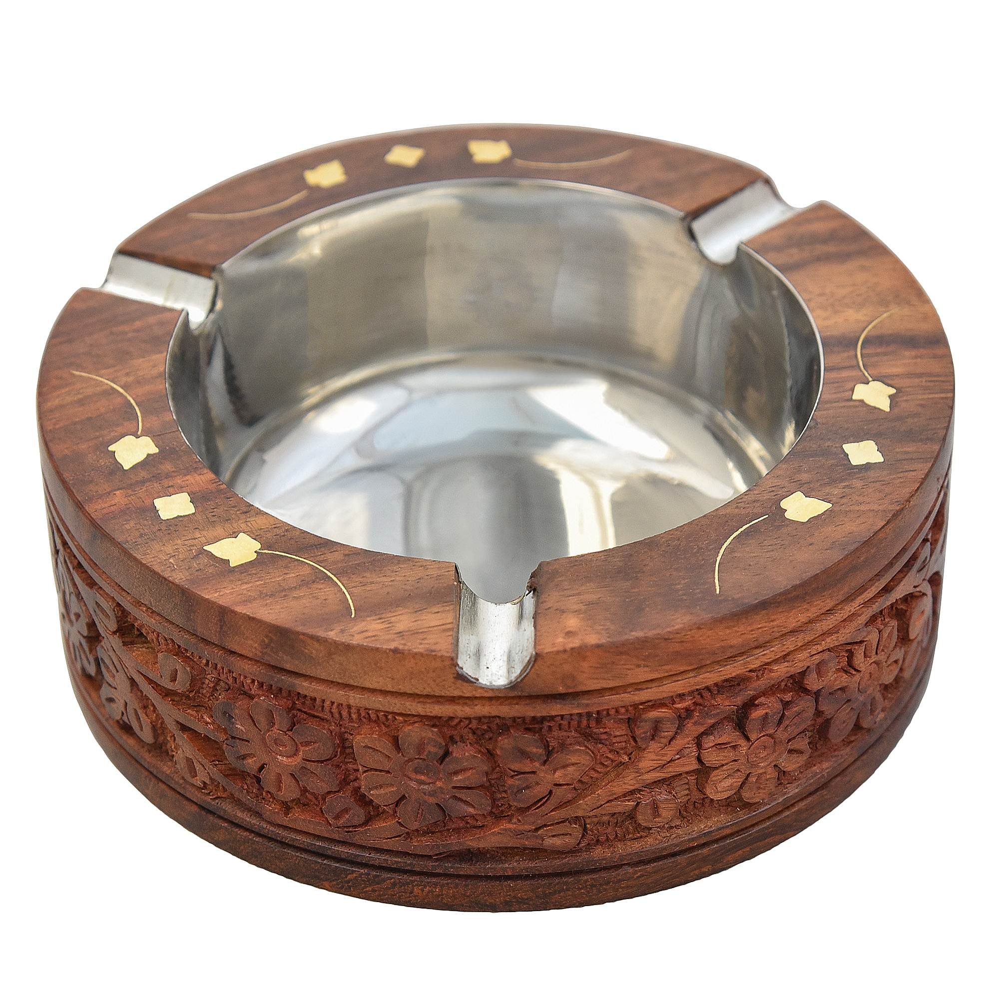 VARANASI WOODEN TOYS Wooden Round Ashtray for Cigarettes - Sophisticated Design - for Indoor/Outdoor Use - Brown Finish (5 inch)