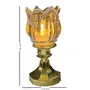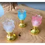Christmas Vibes Acrylic Battery Operated Crystal Lotus Flower Shaped Flameless LED Diya with Stand (Pack of 1) (Green)