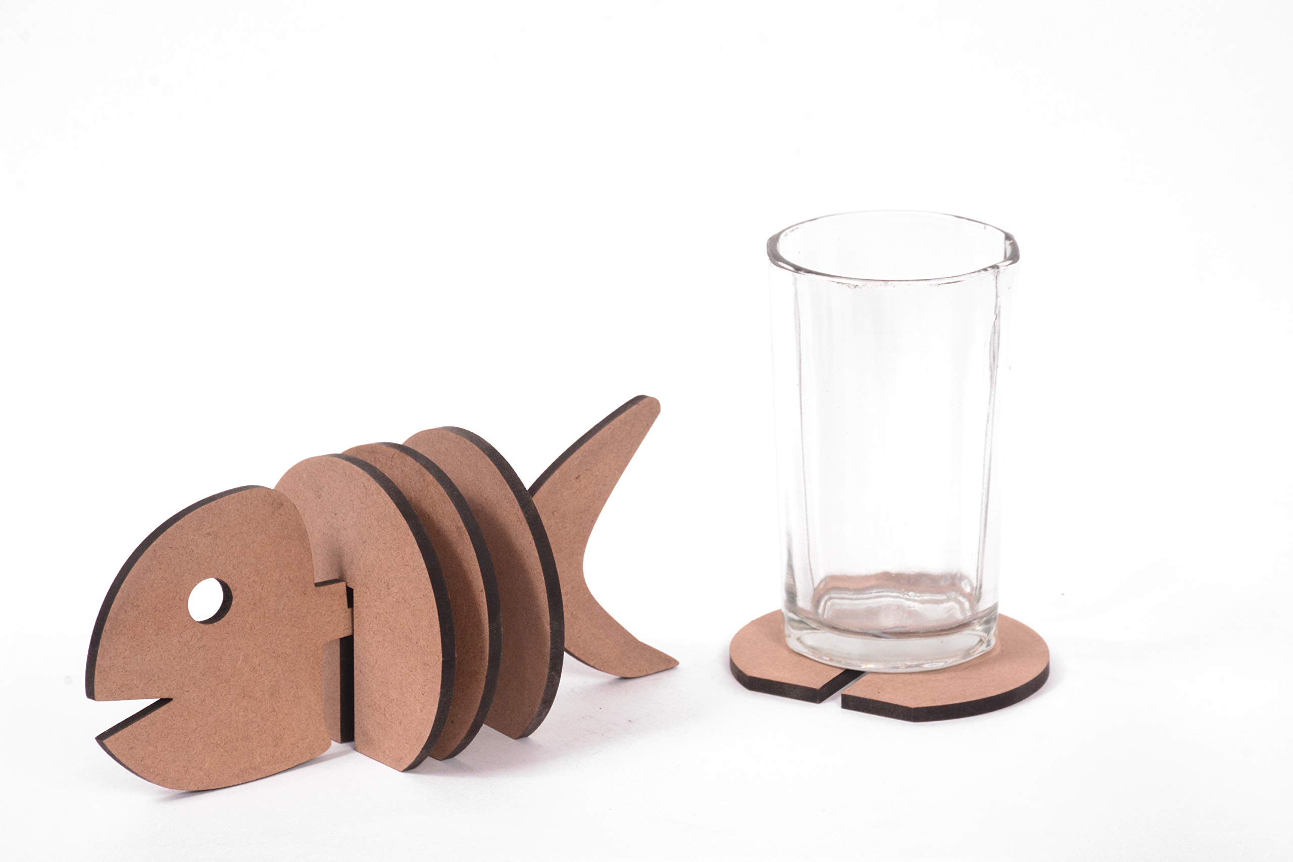 HomeHomeHome AccentCandle & Candle HolderIVEI MDF DIY Coasters with Fish Holder - MDF Plain Wooden Fish Coasters & Holder Blank Cutouts for Painting Wooden Sheet Craft Decoupage Resin Art Work & Decoration - Set of 4 (7.5 in X 3.5 in)