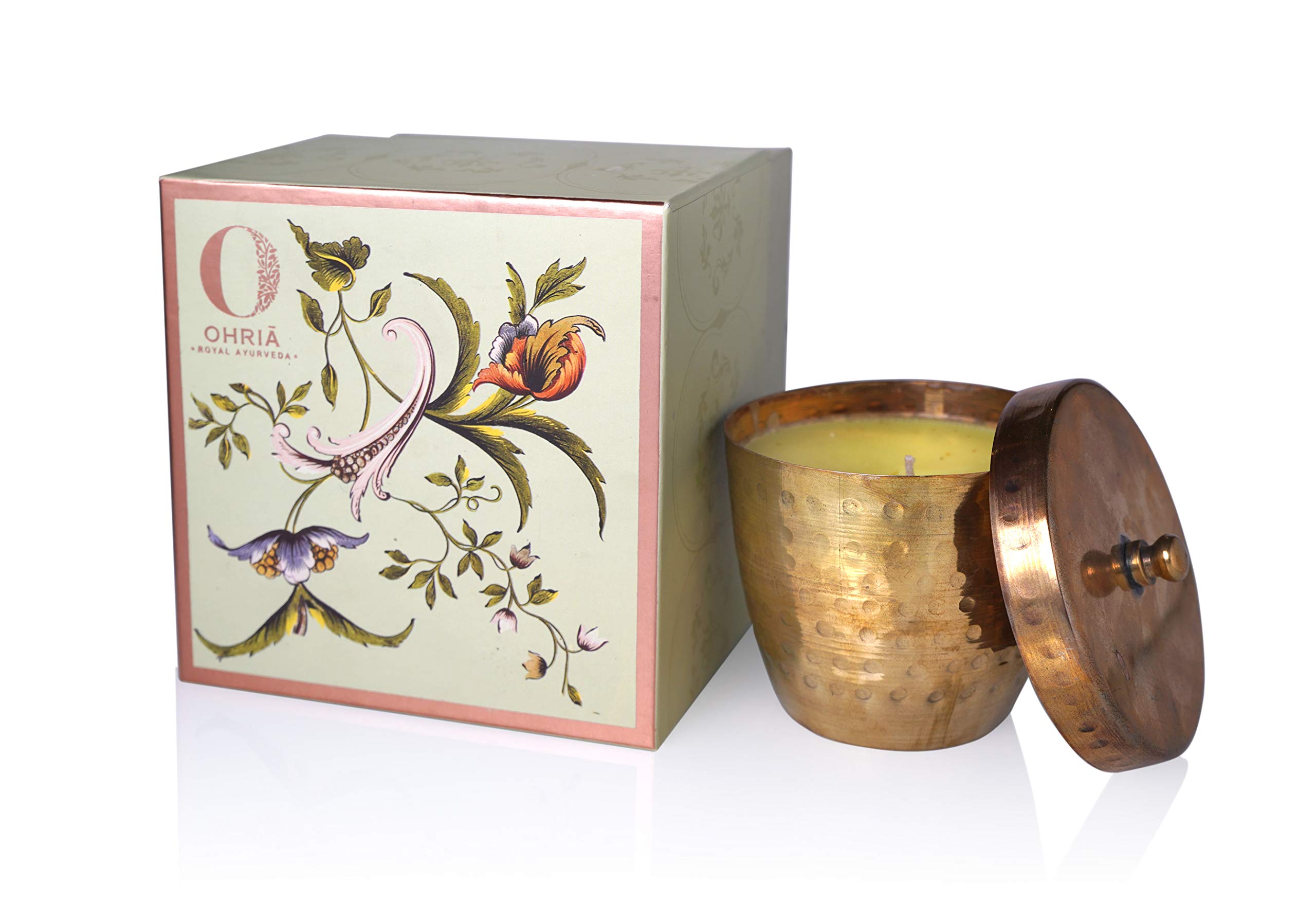 Ohria Raatrani & Mint Luxury Candle | Hand-Poured in Pure Copper/Brass Votive | Natural Soy & Coconut Wax with Cotton Wick | Ideal for Home, Meditation & Gifting- 230g